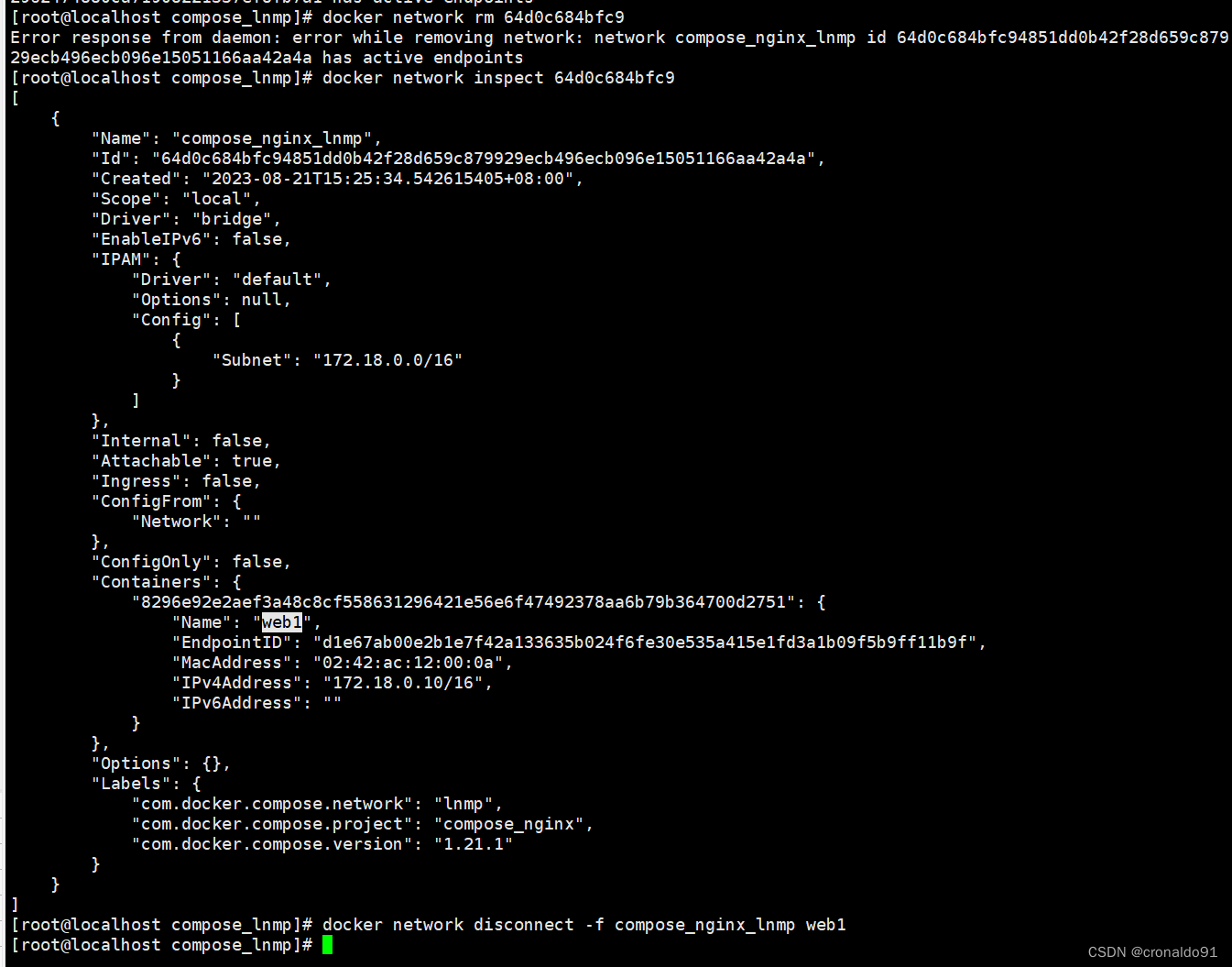 删除docker网卡,提示Error response from daemon: error while removing network