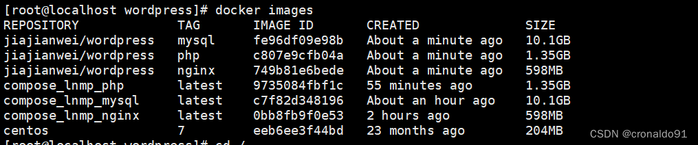 [root@localhost wordpress]# docker images