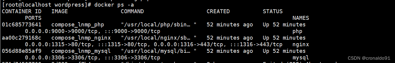 01c685773641 compose_lnmp_php "/usr/local/php/sbin…" 52 minutes ago Up 52 minutes 0.0.0.0:9000->9000/tcp, :::9000->9000/tcp php