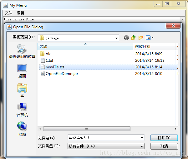 2.根据打开文件的对话框获取路径和文件名,再根据路径和文件名获得文件对象。