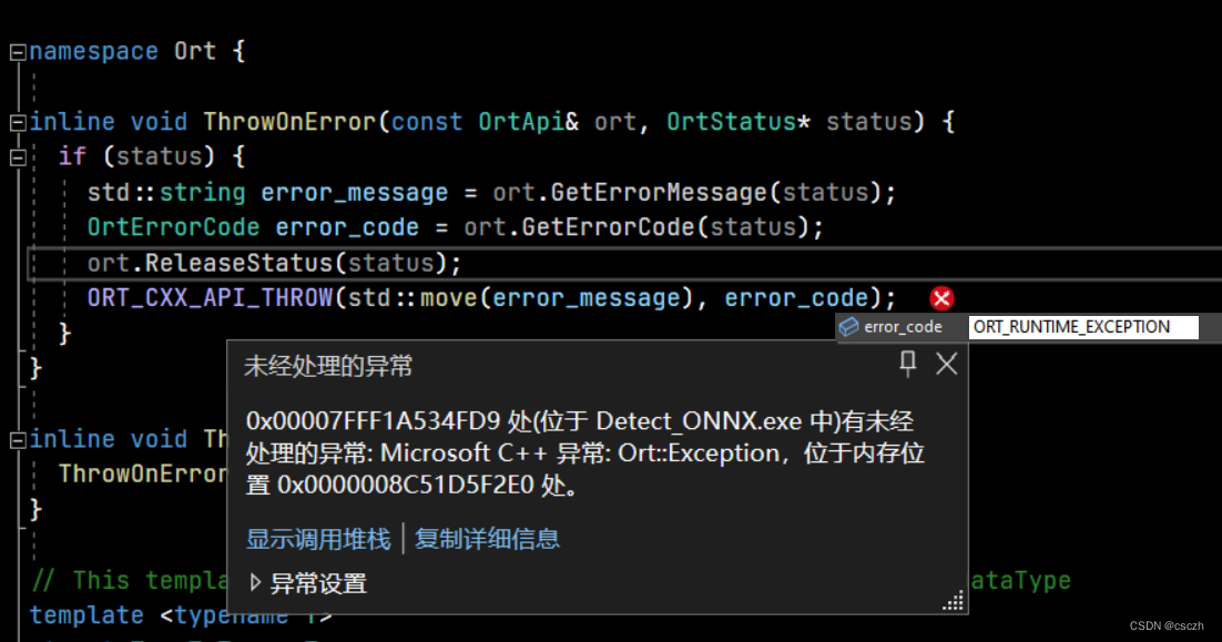 ONNX 运行时报错 ORT_RUNTIME_EXCEPTION Ort::Exception 未经处理的异常 ONNX 运行时报错 ORT_RUNTIME_EXCEPTION Ort::Exception 未经处理的异常
