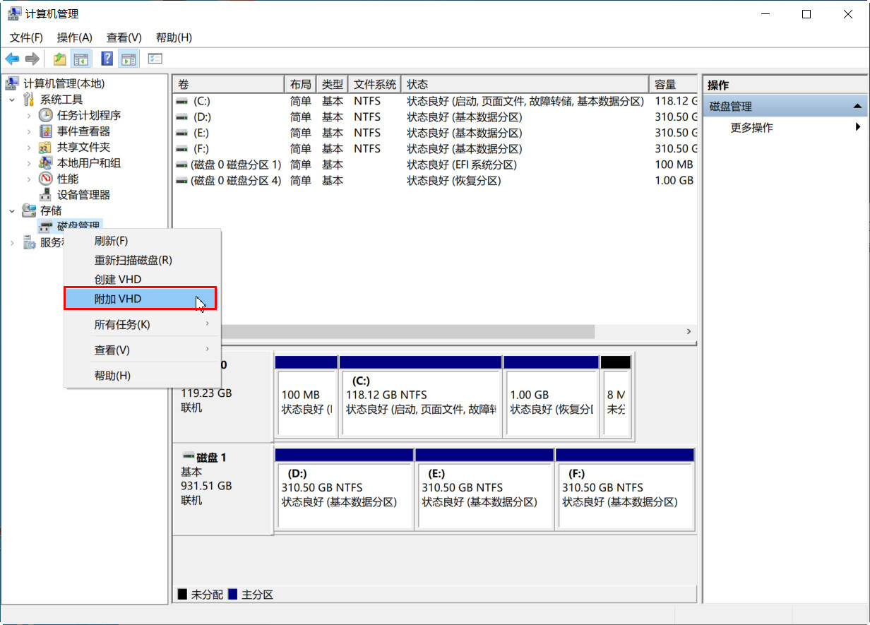如何删除Windows创建的虚拟磁盘 1.右键单击我的电脑(此电脑),单击“管理”2.在“计算机管理”选择“磁盘管理”3.在创建好的“虚拟磁盘”上单击右键,选择“分离VHD”4.对弹出的“提示”单击确定5.创建的“虚拟磁盘”变被删除了6.当要再次使用虚拟磁盘时,只要右键单击“磁盘管理”,然后点击“附加VHD”,找到之前创建的.VHD文件即可...