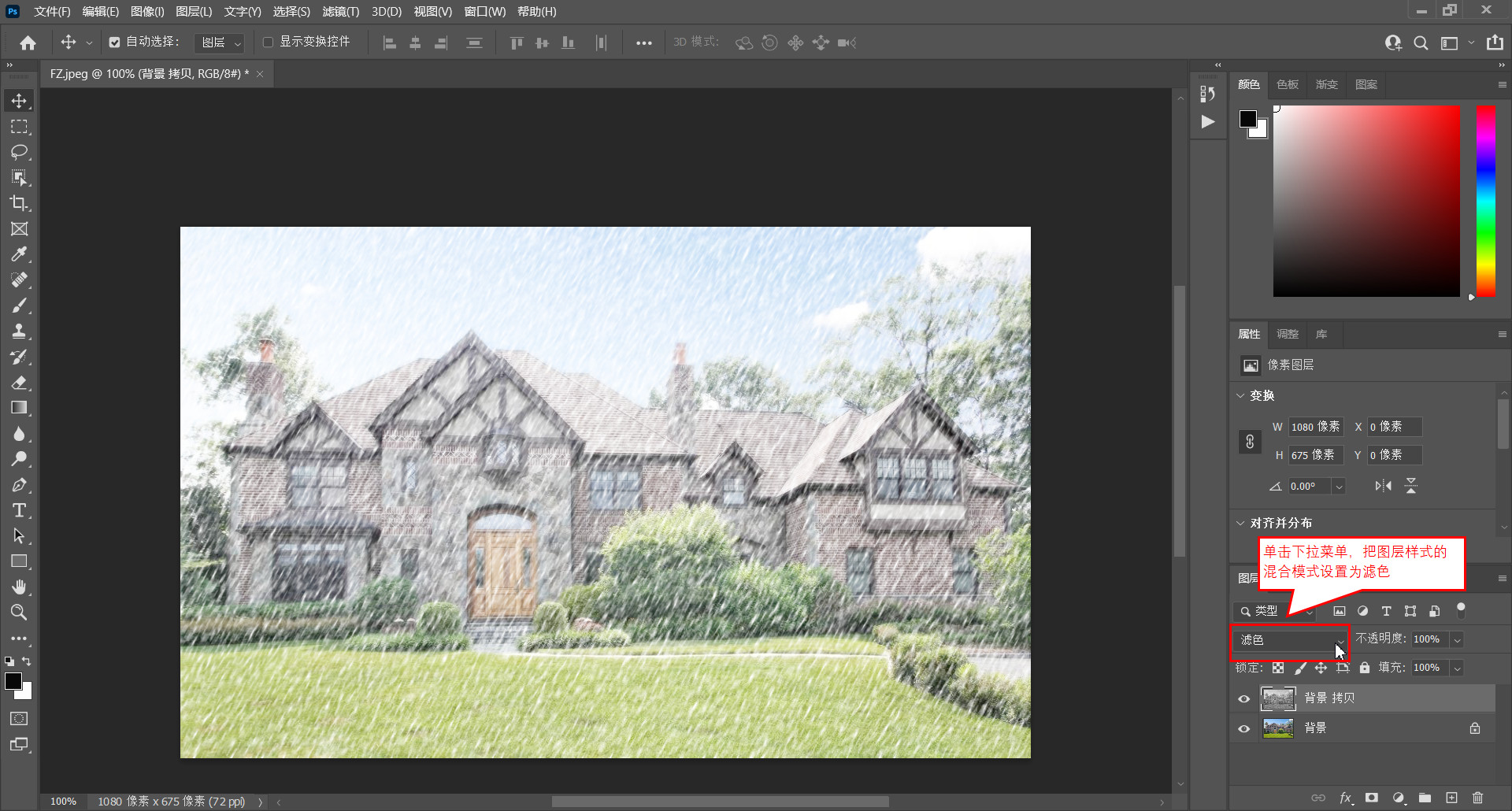怎样用Photoshop做出雪景效果 1.在PS中导入准备好的图片2.在图层面板中将背景图层拖拽到创建新图层按钮复制出一个新图层(也可在背景图层上单击右键-复制图层)3.选中(背景拷贝层),单击菜单栏命令(滤镜-像素化-点状化),打开(点状化)面板,并在(单元格大小中输入数值6),单击确定4. 单击菜单栏命令(滤镜-模糊-动感模糊),打开(动感模糊)面板,并有(角度、距离中输入数值60、10),单击确定5. 单击菜单栏命令(图像-调整-去色),将(背景拷贝层)转变为灰度效果6.在图层面板中,将(图层样式的混合模式)设置