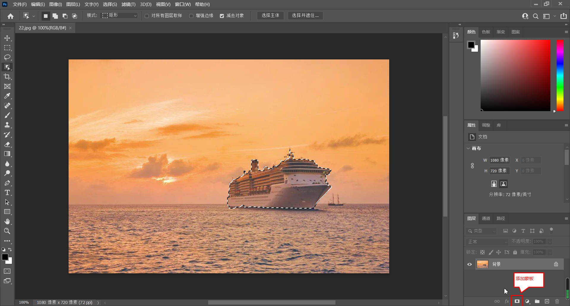 如何用Photoshop2021自动抠图 1.打开Photoshop20212.把你想进行抠图的图片拖拽到PS中3. 点击【对象选择工具】4. 在画布中框出你想要扣出的对象5.系统会自动识别并描绘出对象6.点击右下角的添加蒙板7.抠图完成