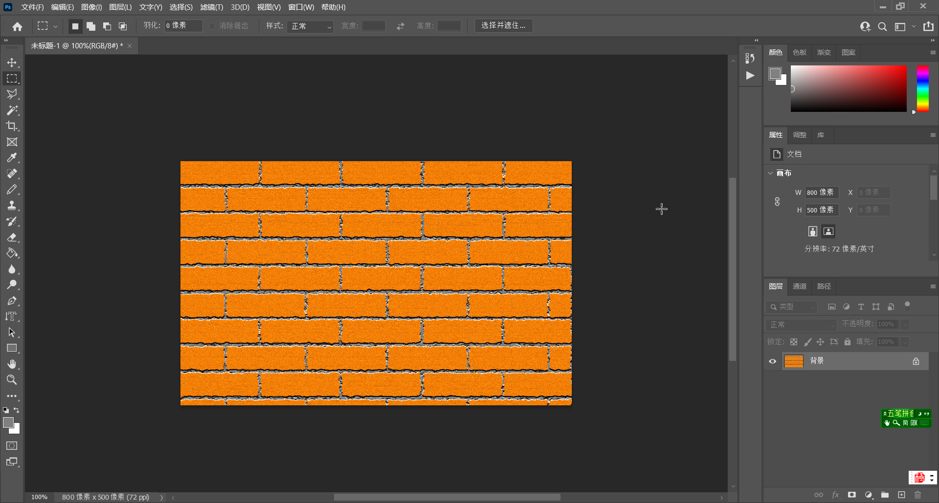 怎样用PS制作出砖墙效果 1.新建一个800*500像素的空白文件2.将前景色的R、G、B数值分别设置为245、130、03.用矩形工具建立一个长方形的选区,然后按快捷键Alt+Delete键将选区填充为前景色4.用方向键或鼠标将选区行动到下一块砖的位置,按Alt+Delete键进行填充,并一直重复这个步骤,直到填充出两排错开的砖5.将填充好的背景层进行拷贝并移动到合适的位置,(进行多次拷贝,直到填充出一面墙)6. 单击菜单栏命令(图层-合并可见图层),将所有图层进行合并7,将(前景色)设置为灰色(RGB推荐128、12