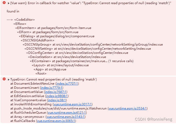 关于VUE2项目中vue2-ace-editor(v0.0.15) 赋值报错问题 解决方案:在vue2中引用vue2-ace-editor时,双向绑定的变量或者对象必须是字符串数据,个人在项目中将其赋值为null也会报错,必须是字符串类型数据。