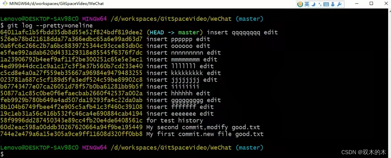 (进入到自己的工作区目录,每个人的不大一样!!)(老师的:e盘下/may/GitSpaceVideo/WeChat)