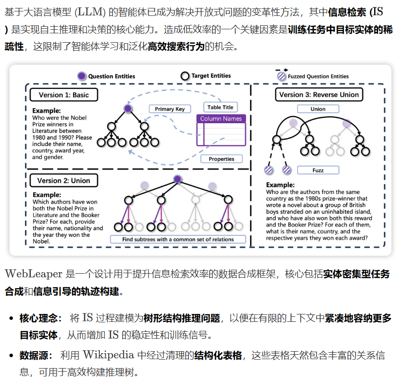 | WebFrontier | 可扩展数据合成引擎 ,通过工具增强的复杂性升级,系统性地生成高质量、高复杂度的训练数据。 | 弥合被动知识回忆与主动知识构建之间的能力鸿沟,解决数据稀缺瓶颈。 |