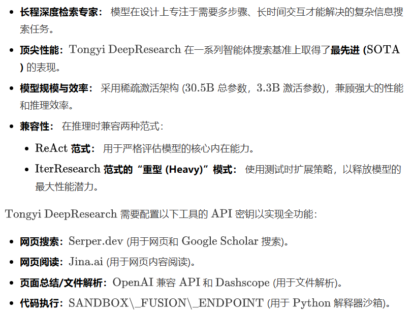 Tongyi DeepResearch 是由 通义实验室 (Tongyi Lab) 开发的一款智能体大语言模型,专门为长程、深度信息检索任务而设计。该模型总参数为 305 亿,但在每个 token 激活的参数仅有 33 亿。