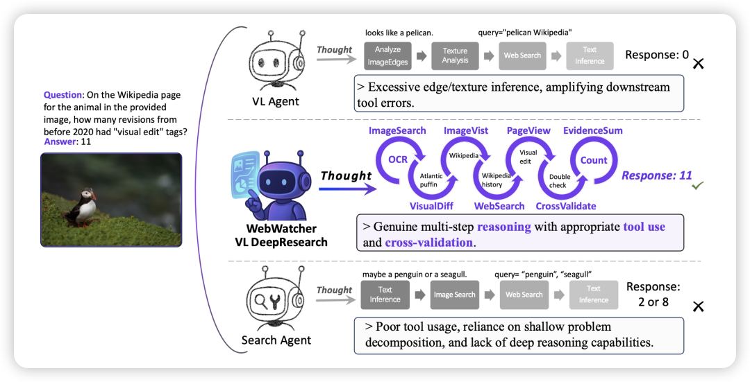 WebWatcher 引入了一个具备增强的视觉-语言推理能力的多模态深度研究智能体。
