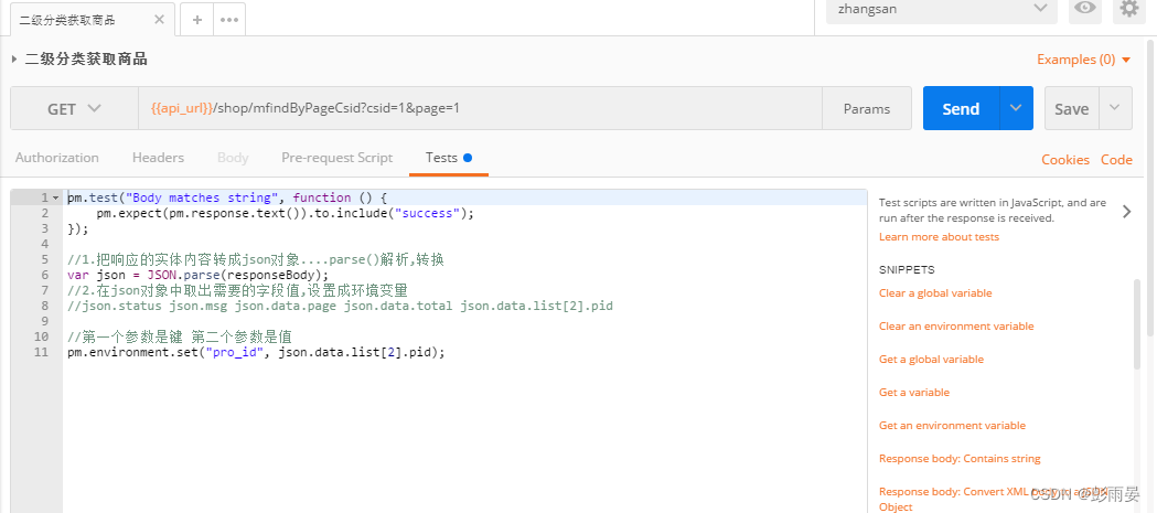 流程:接口文档--->编写接口测试用例--->放到接口测试工具中执行