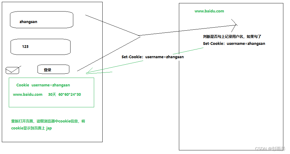Set-cookie:username=zhangsan;Exipres=Moday,具体时间