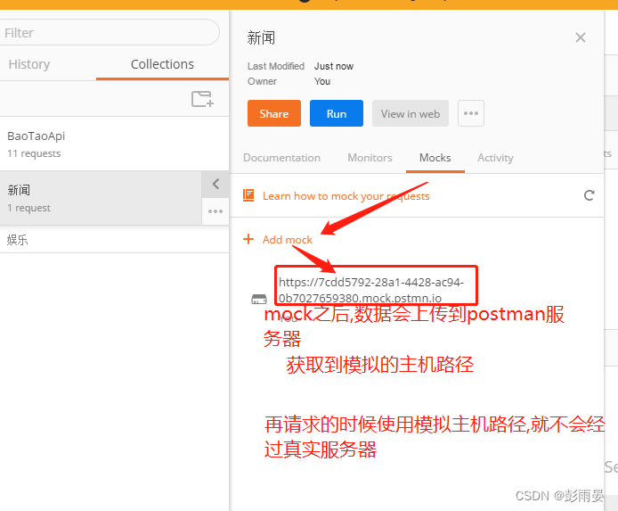 * 把模拟的数据传送到postman服务器上,获取一个模拟主机路径