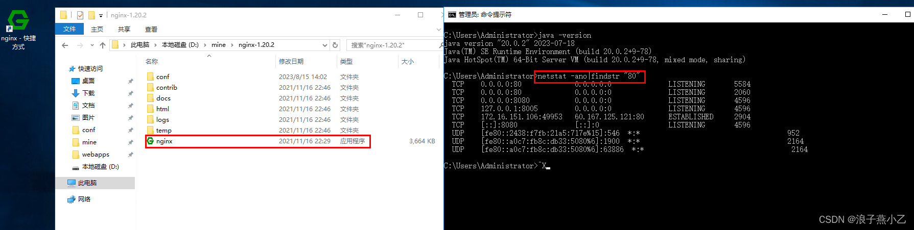 法一:通过快捷方式启动nginx服务并检查nginx端口