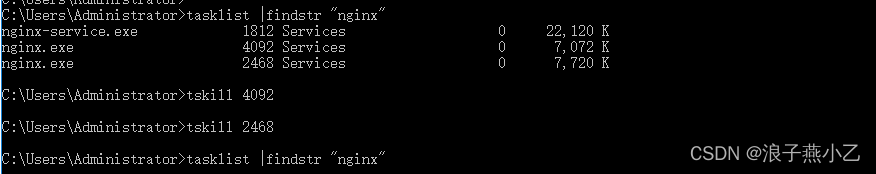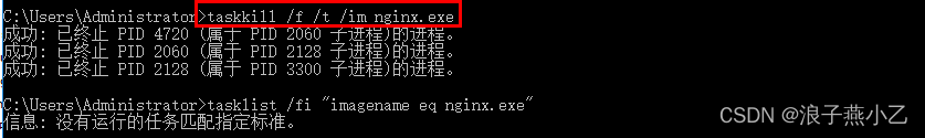 法二:使用taskkill /f /t /im nginx.exe命令关闭所启动的nginx时,不会删除logs中的nginx.pid文件
