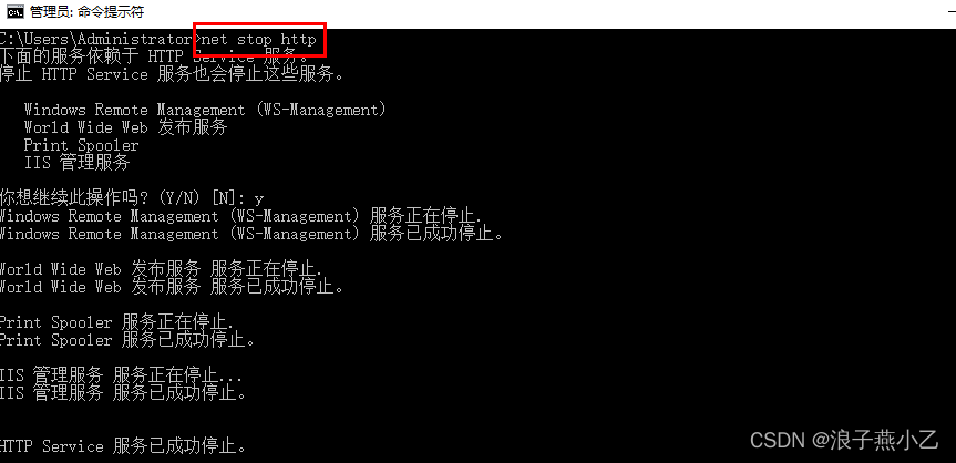 临时关闭:在Windows命令行输入“net stop http”,即可关闭80端口服务;如果需要重新开启服务,则输入“net start http”即可。
