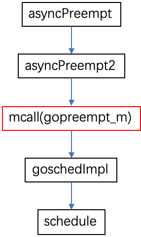 mcall(fn) 的作用是切到 g0 栈去执行函数 fn, fn 永不返回。在 mcall(gopreempt_m) 这里,fn 就是 gopreempt_m。