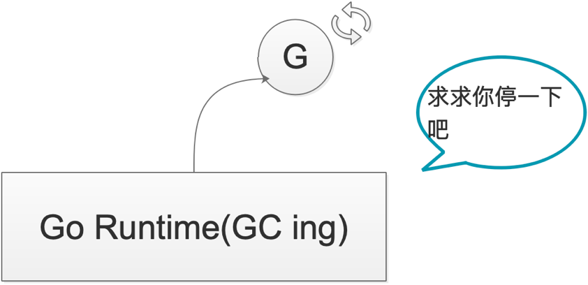 当主 goroutine 主动触发 GC 时,需要把所有当前正在运行的 goroutine 停止下来,即 stw(stop the world),但是 goroutine 正在执行无限循环,没法让它停下来。当然,Go 1.14 还是可以抢占掉这个 goroutine,从而打印出 x 的值,也是 0。