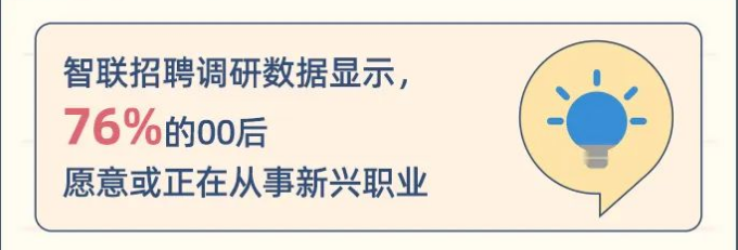 2021年,大量的新职业实现热度攀升。数据显示,76%的00后愿意或正在从事新兴职业。
