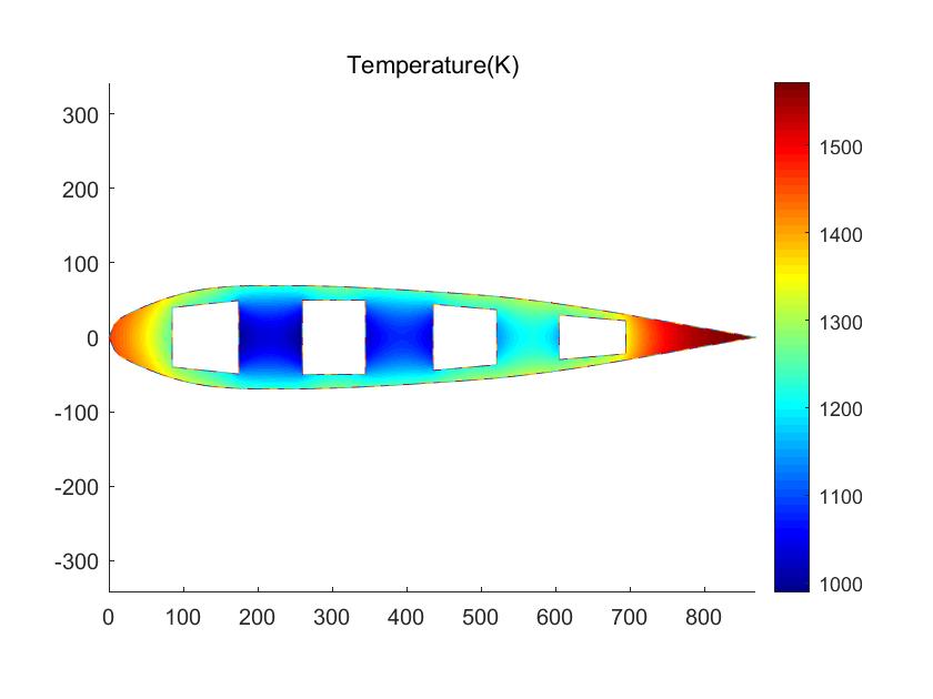 求解下图图所示叶片的温度场在[0-1200s]时间段内的变化,初始条件:T(0)=25℃。