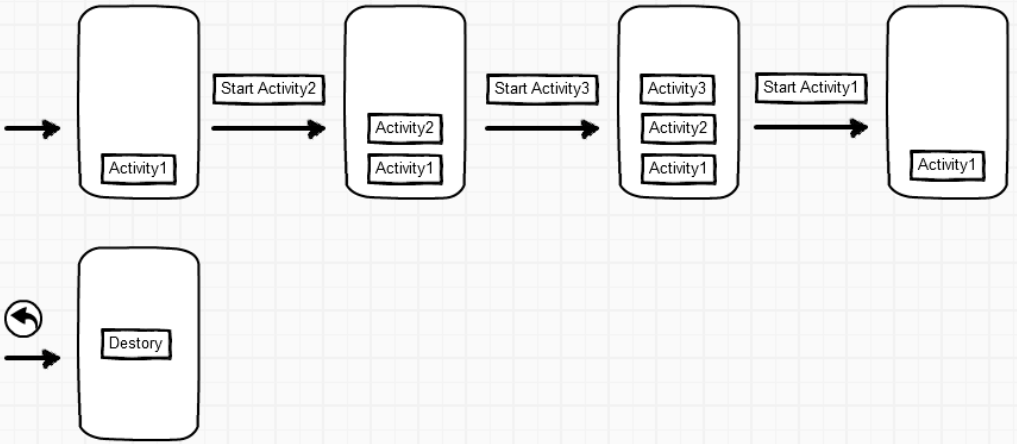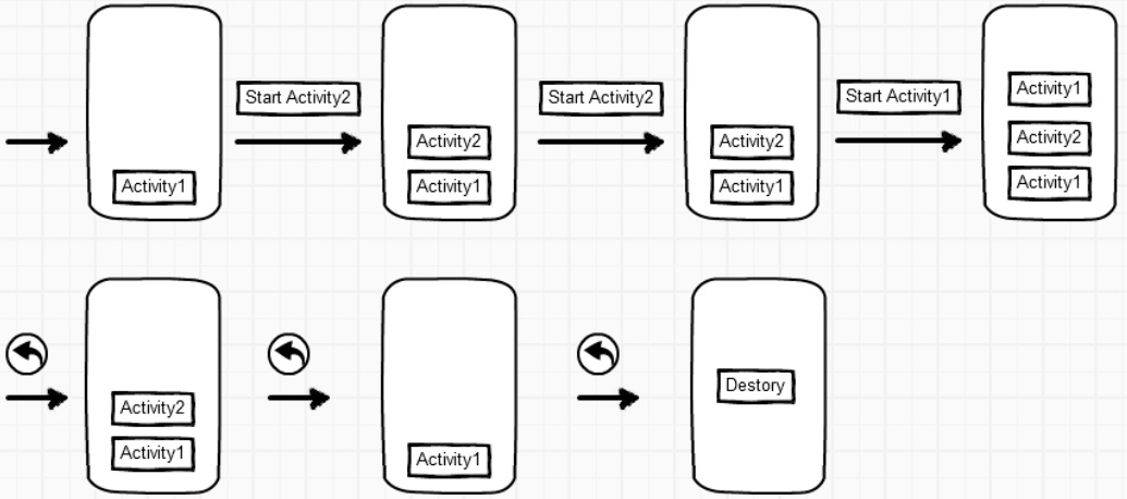 该模式可以被设定,不在mainifest设定时候,Activity的默认模式就是standard。在该模式下,启动的Activity会依照启动顺序被依次压入Task栈中