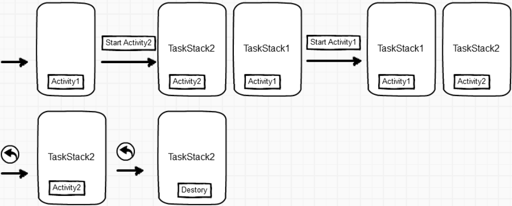 如果已经创建过目标Activity实例,则不会创建新的Task,而是将以前创建过的Activity唤醒