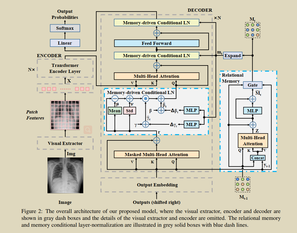 提出新颖的视觉提取器MEDSKIP,将skip连接和卷积块注意模块与HRNet结合起来,并结合Memory Transformer来生成医疗报告。