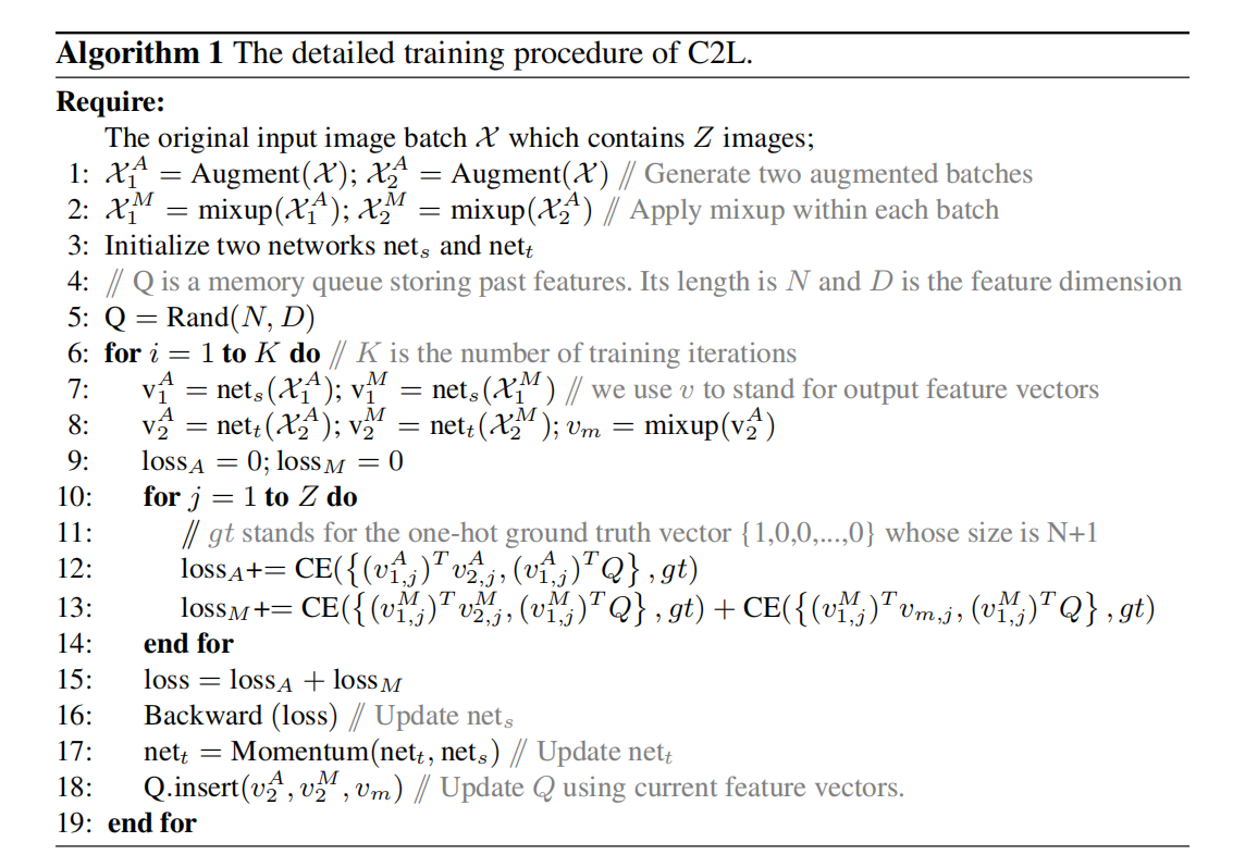 提出了一种全新的基于动量的teacher-student自监督预训练方法C2L(Compare to Learn)。此方法旨在利用大量(70万X光数据 ChestX-ray14、MIMIC-CXR、CheXpert、 MURA)的未标注的X光图像预训练一个2D深度学习模型,提出Batch mixup 、 feature mixup和存储先前epoch中提取到feature的memory queue,使得模型能够在有监督信息的条件下,通过对比不同图像特征的差异,提取通用的图像表达。