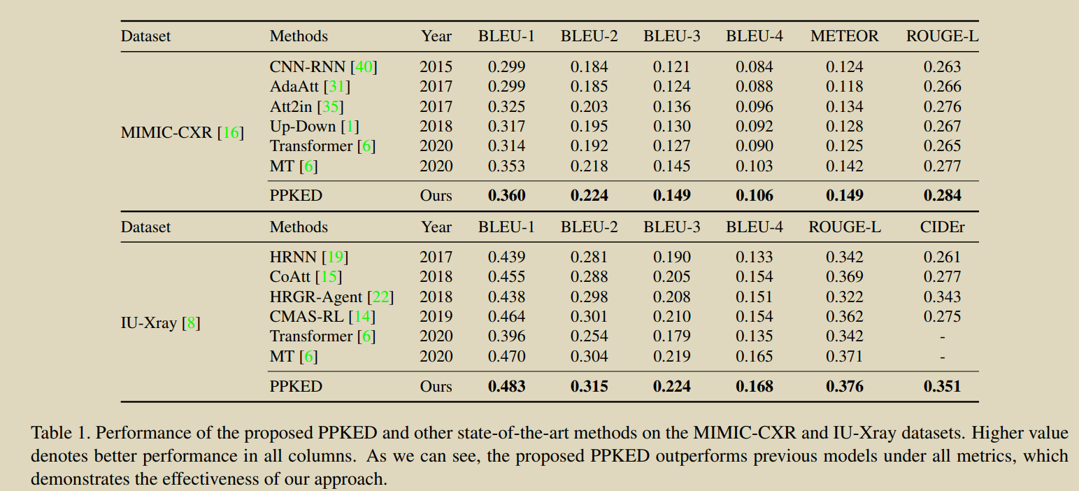 Liu F, Wu X, Ge S, et al. Exploring and distilling posterior and prior knowledge for radiology report generation[C]//Proceedings of the IEEE/CVF Conference on Computer Vision and Pattern Recognition. 2021: 13753-13762.