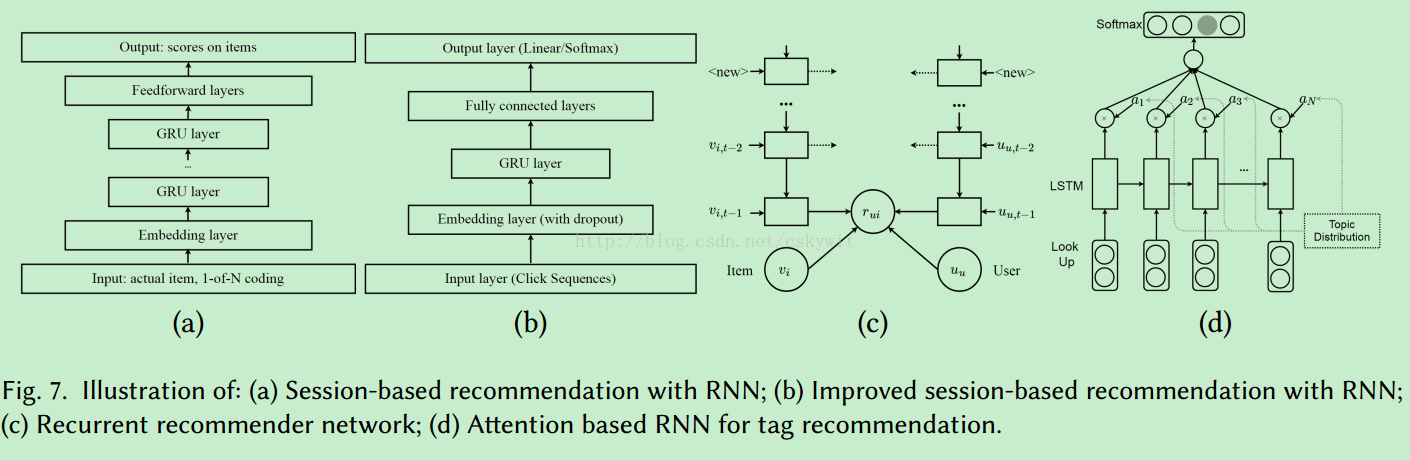 (3)动态时间(Temporal Dynamics)。长时间跟踪用户交互不太可行,但是跟踪用户短期交互是可行的,RNN在会话建模(session modeling)上的优势可以做这一工作。另外深度序列建模对于系统演变的时间动态性建模也很有潜力。