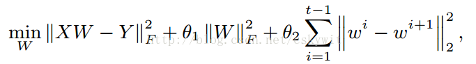 在普通回归的基础上引入额外的正则项,对相邻时间点预测的大的偏差进行惩罚,方程如下:最后一项为Temporal Smoothness正则化项。