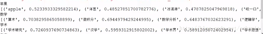 #opencc -i wiki_texts.txt -o test.txt -c t2s.json 训练很费时间,训练完成后即可进行相似度匹配,代码如下: