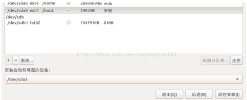 最后选择/boot 所在分区进行安装: