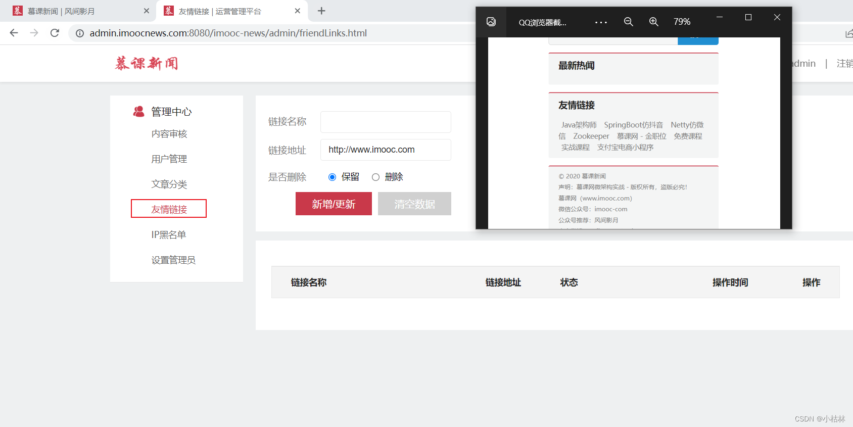 ● 所以,这儿的友情链接的数据存储查询等操作,我们会基于MongoDB来做;