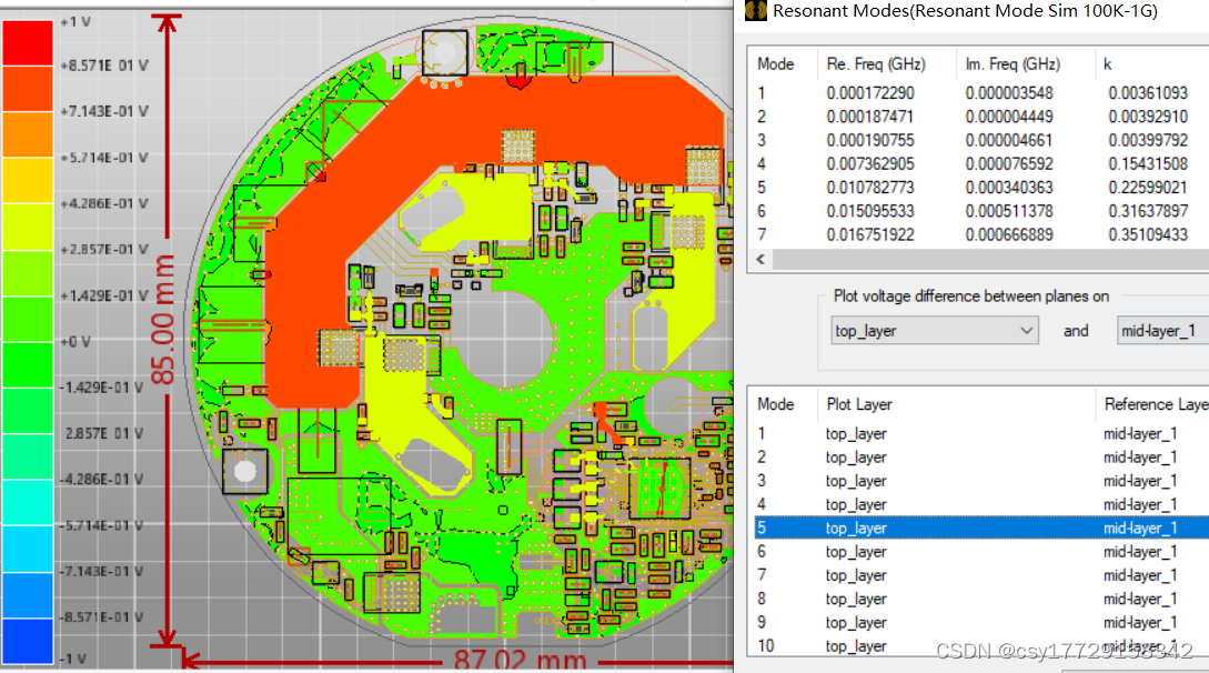 电源完整性仿真案例 仿真结束后,弹出Ansoft SIwave Reporter,如下图所示,从Results 中选择S-Parameters,曲线如图所示。再运行S参数分析,两次结果的对比,加入退耦电容之后的S参数曲线较为平缓,在10.67MHz 的极点也消失了;可根据流程框,依次修改叠层厚度信息,过孔参数,添加RLC参数,分地检查,PCB重复面清理,以及是参数赋模。仿真结束后,弹出如图所示,同样,点击按钮 ,可以看到动态变化。窗口:选择扫描频率的范围及计算的点数,以及仿真层面,按OK,仿真就会开始自动运行,如图所示。...