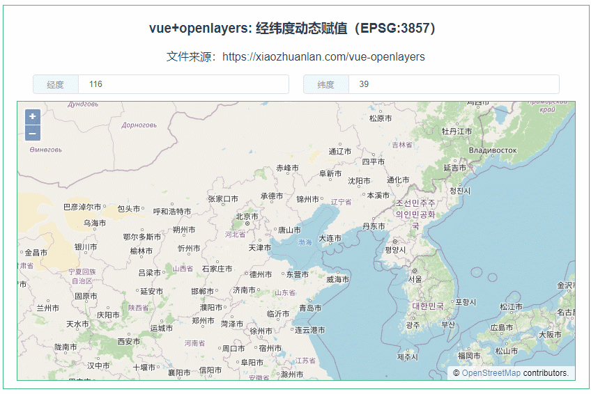本示例演示如何在vue+openlayers中使用popup的形式来显示出经纬度坐标,转换坐标投影,使用EPSG:3857,并动态的赋予坐标值。