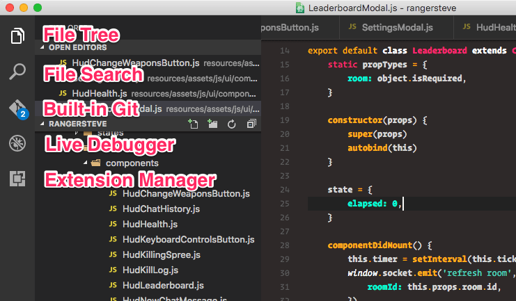 Every feature you find in VS Code has done an excellent job building simple set of features that focus on making you productive with syntax highlighting, smart completion, integrated git, and the in editor debugger.
