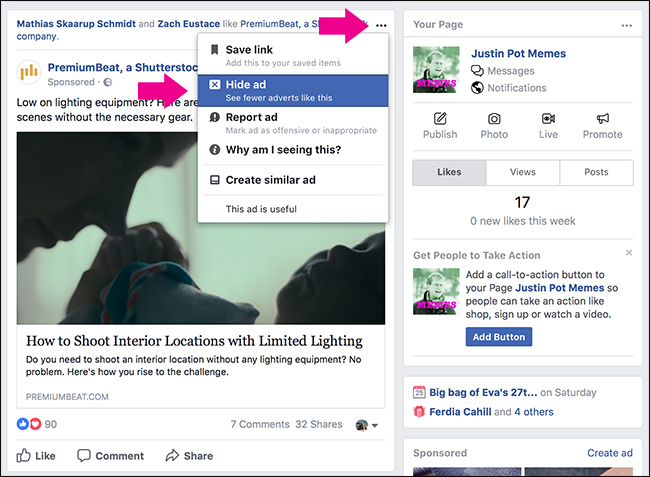 翻译自: https://www.howtogeek.com/334046/how-to-hide-specific-ads-on-facebook/