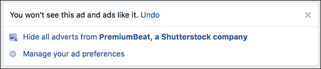 现在,您将永远不会再看到该广告。 如果要删除同一公司的每个广告,请选择“隐藏[公司]的所有广告”。