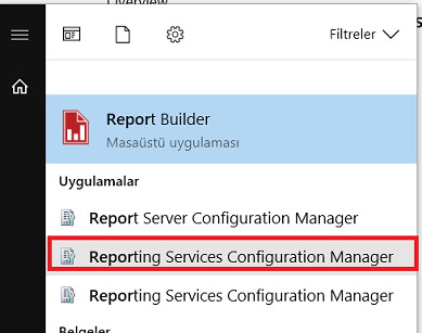 We can find and run the Report Server Configuration Manager on the Windows start screen.