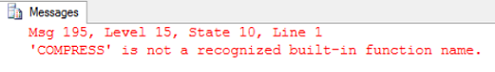 查询将失败,表明COMPRESS函数不是此SQL Server版本(SQL Server 2016之前的版本)中的内置函数: