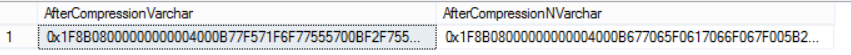SELECT COMPRESS(@NormalStringVarchar) AS AfterCompressionVarchar