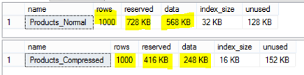 WHERE IDX.object_id IN (OBJECT_ID('Products_Normal'), OBJECT_ID('Products_Compressed'))