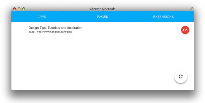 接下来,我们转到Chrome DevTools应用程序窗口,并刷新此列表 (该按钮位于右下方)。