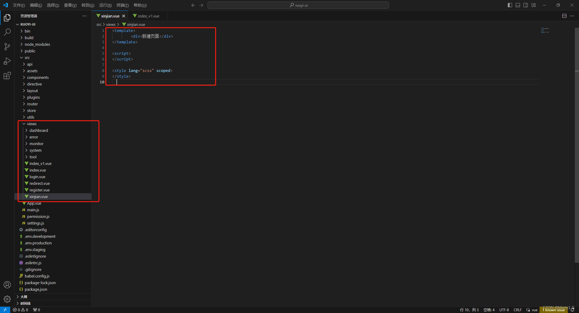若以框架---新建页面 路由地址这个是最重要的,我这个文件放到了这个system内那我写的就是system/xinjian。目录是指新建一个目录就像这个自带的系统管理一样咱们现在就先不新建目录了直接新建菜单。我这边是vue2一定要有一个跟标签,要不然会不显示。1.找到src-views然后新建一个文件夹。保存后不会直接显示,要刷新一下才可以。然后在你的后台的菜单管理去配置。排序也是根据项目所需排列。名字根据项目所需写一个。路由地址随便写一个就行。