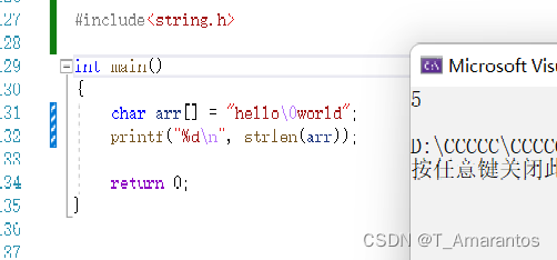 因为hello的后面就遇到了\0,所以strlen函数就已经结束了,字符串后面的world也就读取不到了。