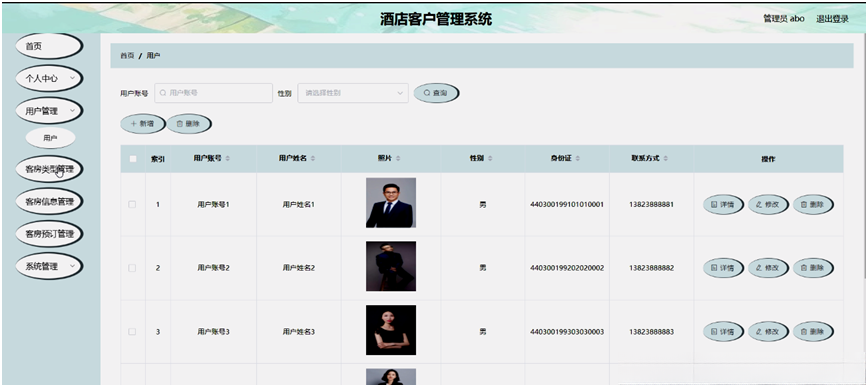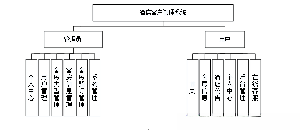 酒店客户管理系统主要有两类用户,分别是用户模块和管理员模块,详细规划如图4-1所示。