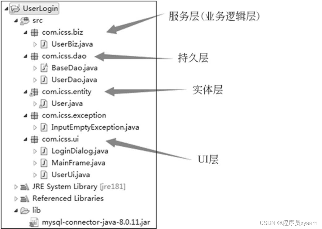 持久层的主要职责就是访问数据库,在Java中使用JDBC来访问关系数据库。持久层的执行结果,会通过User对象返回给调用者UserBiz对象。