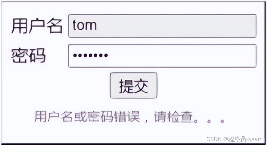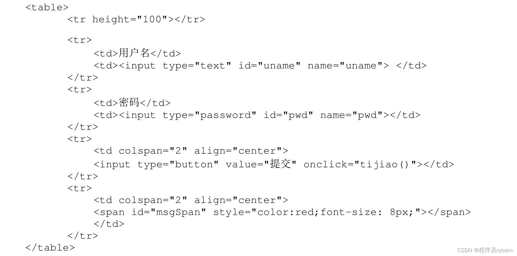 (2)login.html页面AJAX登录显示效果(如图2-10所示)与MVC登录效果(如图2-7所示)相同,但是实现机制与性能有很大差异。login.html的页面布局代码如下,它与login.jsp相比没有了form标签,提交按钮使用type="button"代替了type="submit"。
