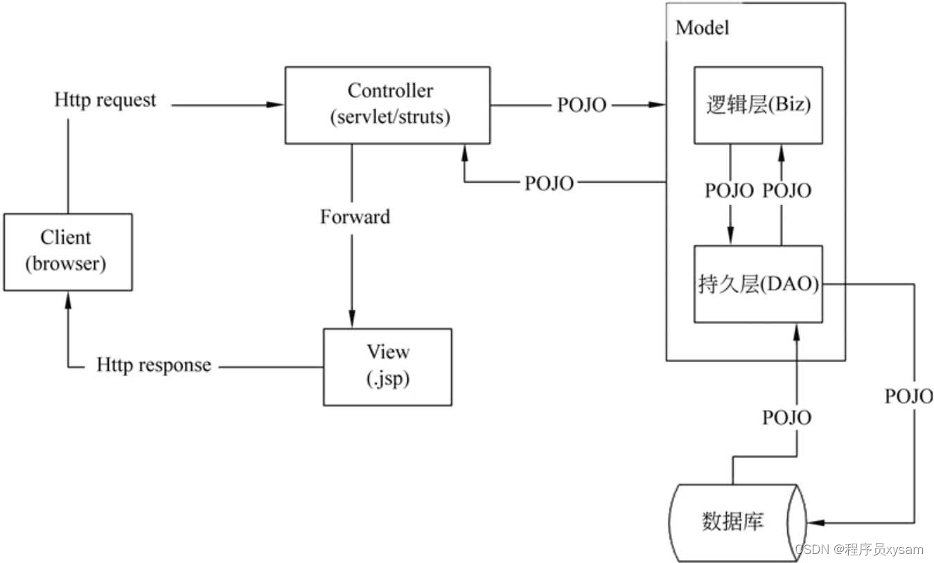 MVC(Model-View-Controller)架构模式是在三层架构的基础上发展出来的B/S编程架构。Java早期的B/S编程模式是“JSP + JavaBean”的架构模式,这个模式与ASP的编程模式相比有了很大的进步,即把所有的项目代码都进行了视图与逻辑的剥离。但是在“JSP +JavaBean”的编程模式中没有控制器的概念,即Servlet组件的定位是字符流和字节流的输出,而不是控制器。